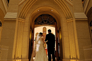 神殿での撮影を行える洋装と和装がセットになったプランです。