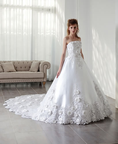 ロングトレーンが美しい正統派Aラインドレスからトレンドを意識したエンパイアシルエットまで選び抜かれた最旬ドレスコレクション。